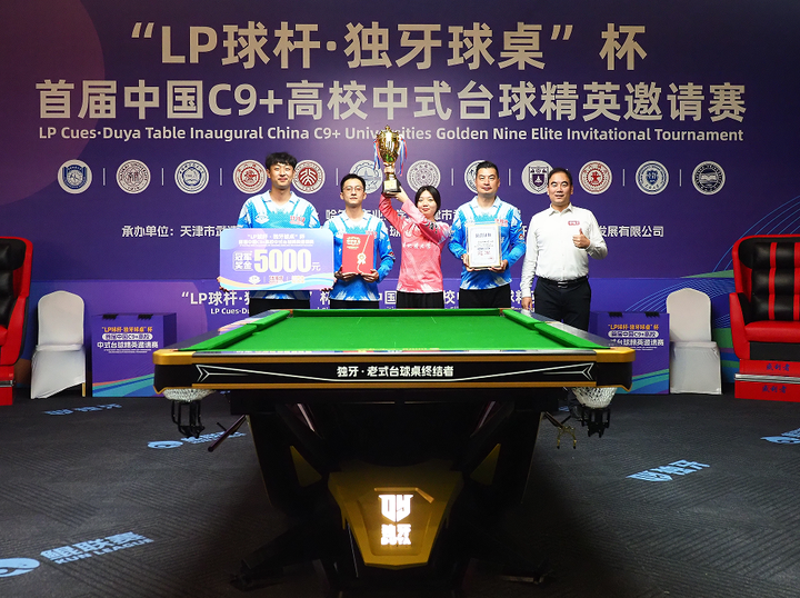 2025年10月28日晚,在天津武清举办的“LP球杆・独牙球桌”杯首届中国C9+高校中式台球精英邀请赛圆满落幕。本次赛事汇聚12所国内顶尖高校台球精英,由哈尔滨工业大学、天津市武清区体育局共同主办。天津市武清区城关镇政府、秦皇岛独牙台球运动推广有限公司和恒轩体育发展有限公司共同承办。历经2天激烈角逐,中式八球团体赛与中式九球团体追分赛的冠亚季军悉数诞生——中国地质大学代表队凭借过硬实力斩获中式八球团体赛冠军,将5000元冠军奖金、荣誉证书与专属奖杯收入囊中,清华大学大学斩获中式九球冠军并获冠军奖金5000元、荣誉证书与专属奖杯,为这场高规格校园台球盛宴画上圆满句点。